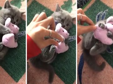 Kitten is aggressively possessive over his pink toy. Cute, isn’t it?