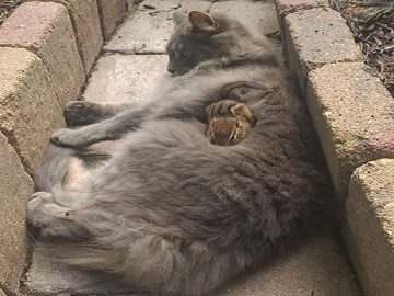 It’s quite hard to resist the kitty fluff and this chipmunk knows it. The brave tiny creature discovered a furry kitten sunbathing in the backyard...