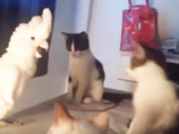 This funny moment captures a parrot meowing to his fellow fluffy felines who are apparently stunned by his cat language fluency. In the video, the...