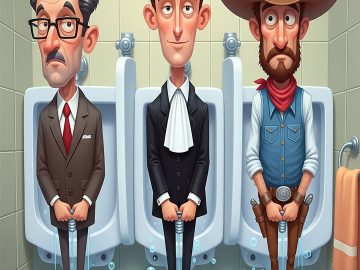 In the men’s bathroom, an accountant, a lawyer and a cowboy were standing side-by-side using the urinal. The accountant finished, zipped up and started washing...