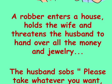 A robber enters a house, holds the wife and threatens the husband to hand over all the money and jewelry… The husband sobs ” Please...