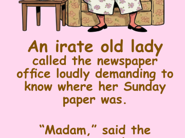 An irate old lady called the newspaper office loudly demanding to know where her Sunday paper was. “Madam,” said the newspaper employee, “Today is Saturday....