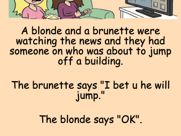A blonde and a brunette were watching the news and they had someone on who was about to jump off a building. The brunette says...