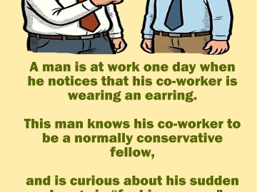 A man is at work one day when he notices that his co-worker is wearing an earring. This man knows his co-worker to be a...