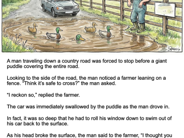A man traveling down a country road was forced to stop before a giant puddle covering the entire road. Looking to the side of the...